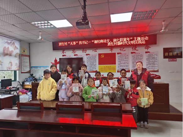????活動中,雙紅村志愿者為他們準(zhǔn)備一些經(jīng)典的兒童詩歌,通過朗誦和互動形式,將這些優(yōu)秀的文學(xué)作品傳遞給孩子們,讓他們在歡樂的氛圍中感受到詩歌的美妙。此次活動為參與的每位兒童提供一次上臺朗誦的機會,大家通過誦讀經(jīng)典詩文相互認識、鍛煉自我、提振信心,同時讓他們的童年更加豐富多彩。